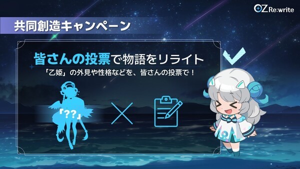 따라서, 사용자와 함께 만들어가는 공간을 마련하고 싶다는 생각에서, 캐릭터를 함께 만들어가는 '공동 창조 캠페인'을 실시했다고 설명했다. 이 캠페인은 캐릭터의 외모뿐 아니라 성격과 이야기까지 함께 만들어가는 점에 큰 의미를 지니며, 최종적으로 “자신이 좋아하는 게임을 함께 만들고 있다”라는 느낌을 받을 수 있다면 기쁠 것이라고 언급했다.