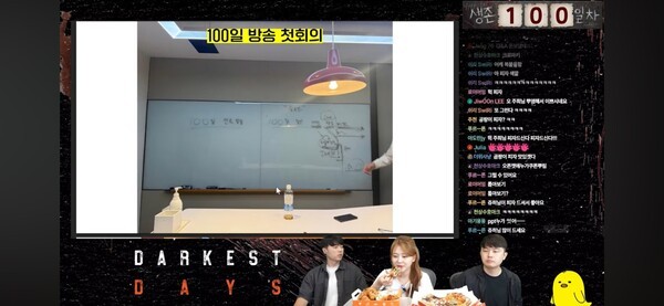 100일차 '다키스트 데이즈' 방송은 3시간 가까이 진행됐다. 처음부터 끝까지 100일간 함께해 준 유저들은 물론 해외 유저들도 관심을 보내면서 마지막 연속 방송은 성황리에 마무리됐다.
