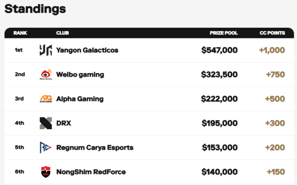 DRX는 마지막 매치16과 매치18에서 분전한 덕분에 최종 순위를 4위까지 끌어올리는데 성공, 12만 달러(한화 1억 6천만 원)의 상금을 가져갔다. 농심 역시 종합 6위에 오르면서 9만 달러(한화 1억 2천만 원)의 상금을 확보했다.