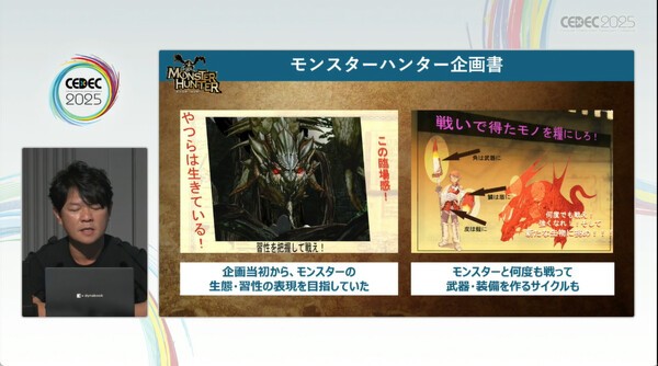 지난 7월 22일부터 24일까지 일본 퍼시피코 요코하마 노스에서 개최된 개발자 대상 컨퍼런스 ‘CEDEC 2025’에서 기조 강연 ‘몬스터헌터 시리즈, 21년의 지속과 매커니즘’이 진행되었으며, 귀중한 기획안 등과 함께 지금까지의 제작 비화가 전해졌다.
