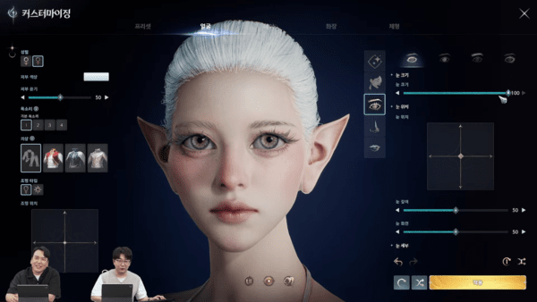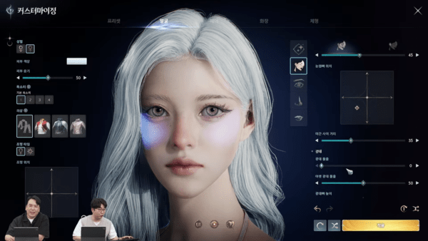 '아이온2'의 캐릭터 커스터마이징은 조정 가능한 대부분의 요소를 세밀하게 제어할 수 있는 광범위한 옵션을 제공한다. 현재 조정 중인 부위는 푸른색으로 하이라이트되어 직관적인 식별이 가능하다.