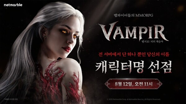 넷마블(대표 김병규)은 뱀파이어 컨셉 MMORPG <뱀피르>의 출시에 앞서 캐릭터명 선점 이벤트를 오는 12일 진행한다고 밝혔다.