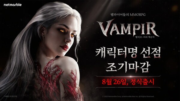 앞서 <뱀피르>는 지난 12일 오전 11시 진행한 1차 캐릭터명 선점 이벤트가 약 50분만에 조기 마감됐으며, 같은 날 진행된 2차 이벤트 역시 조기 마감된 바 있다.