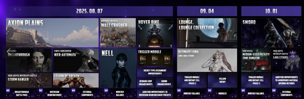 전투, 액션의 재미는 곧 ‘계승자(캐릭터)’를 육성하는 콘텐츠로 이어진다. ‘액시온 평야’에서 즐기는 모든 콘텐츠는 자연스럽게 ‘계승자’, ‘무기’, ‘호버 바이크’, ‘트리거 모듈’ 등 주요 제작 아이템과 ‘계승자’ 육성에 필요한 보상의 재료 수급처가 된다. 슈팅을 통해 아이템을 획득하는 루트슈터 게임 핵심을 재설계한 것.