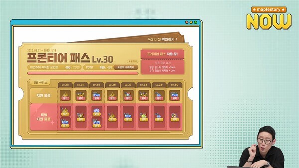‘프론티어 패스’는 기존 챌린저스 패스의 후속으로, 일반 월드에서도 구매 가능하며 5월 22일 이후 생성 캐릭터에 한해 3개월간(11월 19일까지) 적용된다. 효과(몬스터 방어율 무시, 추가 경험치)는 챌린저스와 동일하나 가격은 5만 원대(상향 조정)다. 김 디렉터는 정말 필요한 분들만 선택적으로 구매하길 당부했다.