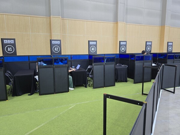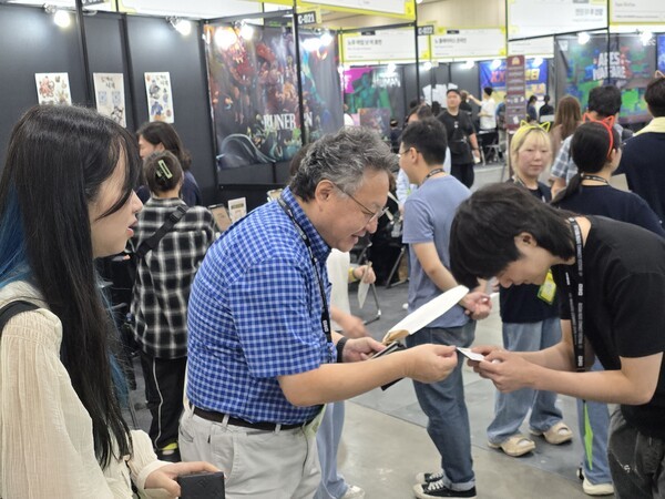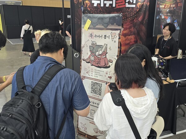 BIC 2025 행사장에 입장하면 만날 수 있는 모습이다. 특히 일부 인디 게임 개발자들은 입구에서부터 안내문이나 가방, 부채 등을 나눠주며 미리 게임에 대해 홍보하고 부스 방문을 독려하고 있었다.