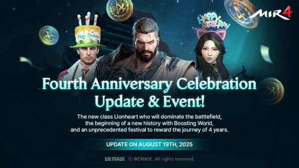 Wemade’s global MMORPG MIR4 is celebrating its fourth anniversary with a massive content update that introduces a new playable class, a returning growth-focused server, and a wave of celebratory in-game events.