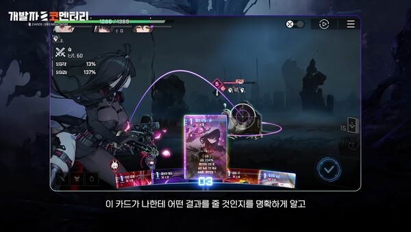 전투 시스템은 카드 덱을 활용한 턴제 방식으로 설계됐다. 개발진은 "모바일 환경에서 전략성을 가장 잘 표현할 수 있는 장르"라며 카드 시스템을 선택한 이유를 밝혔다. 특히 "카드를 쓴다는 것은 결국 카드를 던지기 직전 항상 유저가 선택을 한다는 것"이라며 "선택의 근거를 시각적으로 주고자 하는 노력을 굉장히 많이 했다"고 강조했다.