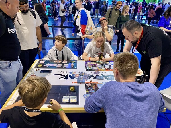 부스에서 제공한 보드 게임으로 아이들이 즐겁게 카드 게임을 즐기고 있다. '파라마운트+'는 자체 IP를 활용한 다양한 굿즈도 전시장에서 선보였다.
