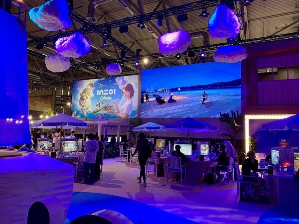특히 부스는 게임의 시간과 동일하게 밤과 낮 표현을 추가해 현실감을 높였다. 어두운 조명 아래 표현된 '인조이'의 밤은 휴양지의 여름밤을 떠올릴 수 있는 분위기로 조성되며 유저들에게 차분한 분위기를 제공했다. 더불어 낮 시간의 밝은 조명에서는 뜨거운 태양과 같은 환경들을 선보여 '차하야' 시연의 경험을 한층 끌어올렸다.