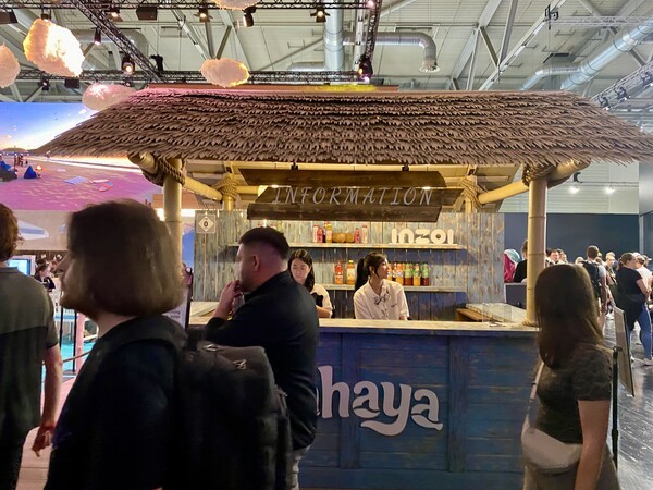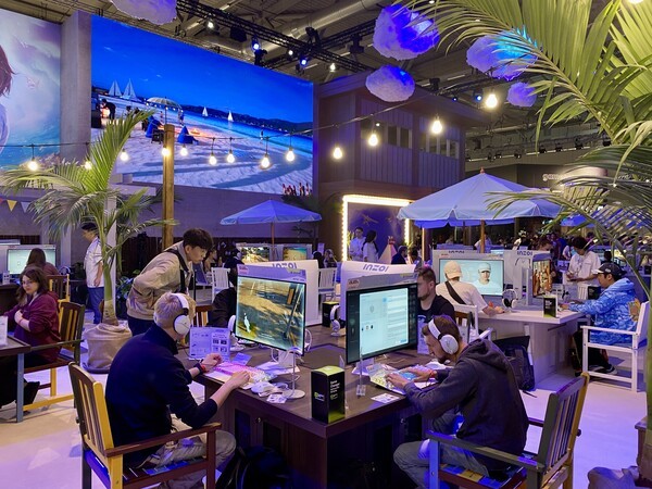 현장에는 '인조이'의 최신 업데이트 콘텐츠인 '차하야'를 직접 플레이 해볼 수 있는 시연대가 마련됐다. 이와함께 신규 콘텐츠의 핵심 요소들인 거대한 요트 구조물과 고양이 등의 포토존이 배치되면서 방문객들의 인기를 끌었다. 전반적인 부스 분위기를 동남아 휴양지 분위기로 꾸며 유저 시연에 몰입감을 추가한 것이다.