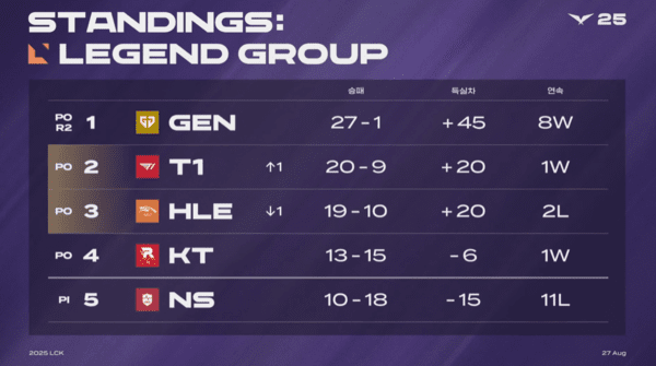 8월 27일 저녁, 서울 롤파크에서 라이엇 게임즈 주관으로 '리그오브레전드 챔피언스 코리아(LCK)' 5라운드 2주차 T1 vs 한화생명 경기가 열렸다. 레전드 그룹 2위 결정전으로 열린 경쟁은 시작 전부터 큰 관심을 모았으며, 관심 만큼 경기에서도 난타전이 펼쳐졌다.