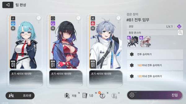 게임의 가장 큰 특징은 로그라이크 덱빌딩 시스템이다. 3명으로 구성된 팀에서 각 캐릭터는 기본 카드 4장과 고유 카드 4장을 보유하며, 총 24장의 덱을 구성해 전투를 진행한다.