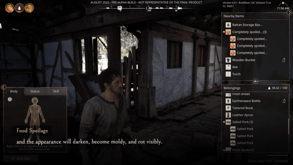 부패한 음식을 섭취하면 캐릭터에게 악영향을 미치기 때문에, 플레이어는 꾸준한 화력 유지와 식재료 관리라는 추가적인 생존 과제를 안게 된다. 개발팀은 향후 음식을 말리거나, 소금에 절이는 등의 보존 방법도 추가할 예정이라고 밝혔다.