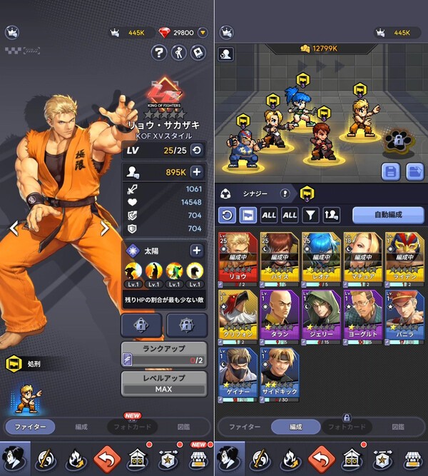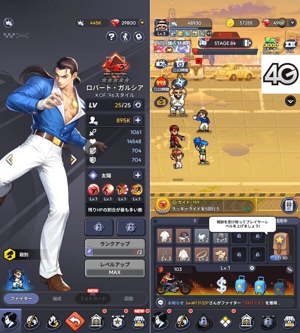 '킹오파 AFK'는 SNK의 인기 격투 게임 '더 킹 오브 파이터즈'의 파이터들을 소재로 한 방치형 RPG다. 캐릭터는 고해상도 일러스트로 그려지는 동시에, 옛날 팬들에게는 추억을 불러일으키는 픽셀 도트 그래픽으로 표현되어, '새로움'과 '추억'을 동시에 실현하고 있다.