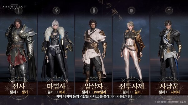 ‘아키텍트’는 전사, 마법사, 암살자, 사냥꾼, 전투사제 총 5개 클래스로 구성되어 있으며, 각 클래스는 버려진 땅에 인접한 대륙 국가들을 대표하는 설정으로 디자인됐다.