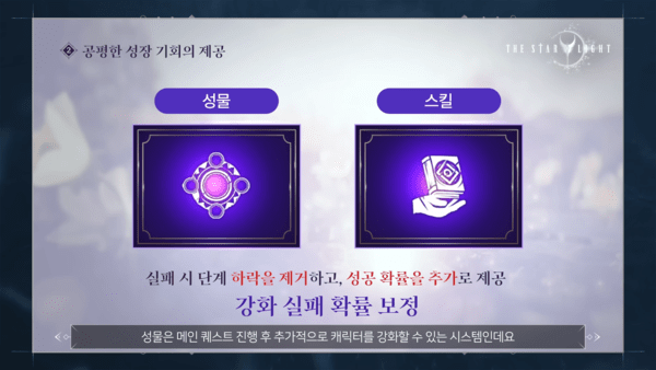 '더 스타라이트' 박경태 기획팀장은 "유저가 가진 아이템의 가치를 오랫동안 유지하고, 모든 유저가 공정하게 성장할 수 있는 환경을 만드는 것"을 게임의 핵심 목표로 제시했다. 즉, 유저의 소유물에 대한 가치를 보존해 탄탄한 경제 시스템을 제공하고자 한다.