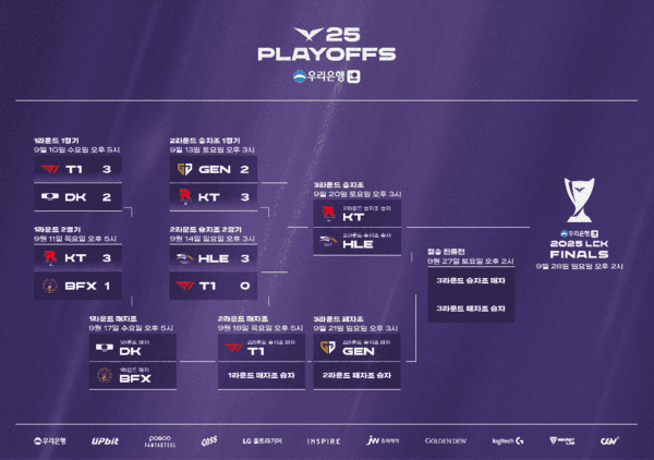 2025 LCK 플레이오프는 더블 엘리미네이션 방식으로 진행되고 있다. 한 번 패배를 경험하더라도 패자조(하위조)를 통해 전열을 가다듬고 재도전할 수 있는 기회를 제공하는 방식이다. 플레이오프 1라운드에서 고배를 마신 디플러스 기아와 BNK 피어엑스, 플레이오프 2라운드에서 한화생명e스포츠에게 완패한 T1이 패자 부활전에 나선다.