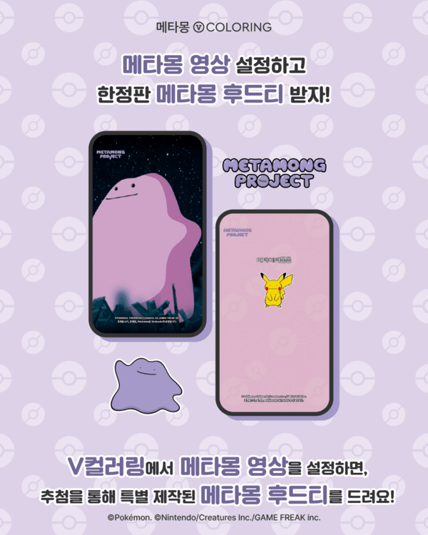 자세한 사항은 V컬러링 공식 홈페이지에서 확인할 수 있으며, 더 많은 메타몽 관련 소식은 ‘메타몽 프로젝트’ 공식 인스타그램을 통해서도 확인할 수 있다.
