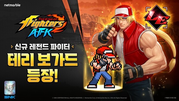 넷마블(대표 김병규)은 캐릭터 수집형 AFK 모바일 RPG '킹 오브 파이터 AFK(개발사 넷마블네오)'에 신규 캐릭터 ‘테리 보가드’를 추가하는 업데이트를 실시했다고 18일 밝혔다.