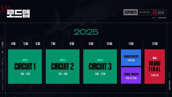 이번 서킷은 2025년 마지막 정규 시즌으로, 서킷 3까지의 누적 승점을 기준으로 상위 6개 팀이 오는 12월 개최되는 ‘그랜드 파이널’ 진출권을 획득하게 된다. 예선을 통해 선발된 ‘A.S’, ‘OTCS’, ‘FN ESPORTS’, ‘벌꿀오소리’ 등 8개 팀이 매주 주말 온라인 경기를 치르며, 결승전은 11월 1일 온·오프라인으로 개최된다. 경기는 3인 2팀이 맞붙는 ‘캐시아웃 최종 라운드 룰’ 방식의 7판 4선승제로 진행된다.