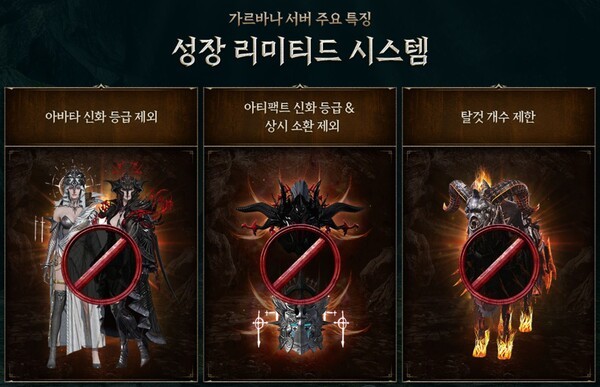 이번 업데이트의 또 다른 핵심은 성장 제한 특화 신규 서버 '가르바나'의 출시다. 이 서버는 아바타 신화 등급과 아티팩트 상시 소환 등의 요소를 제한해 재화를 통한 성장보다는 게임 분석과 플레이 타임이 전투 결과에 최대한 반영되도록 기획됐다. 개발팀은 아바타 및 아티팩트 신화 등급을 최소 1년 동안 출시하지 않겠다고 명시했으며, 이후 출시 시기에 대해서도 신중하게 검토하겠다고 밝혔다.