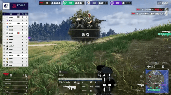 론도의 스타디움 자기장 속에서 T1은 공격적인 움직임을 바탕으로 10킬 이상을 가져가 순위를 끌어 올렸다. GNL과 펜텀하츠 등도 많은 킬을 바탕으로 킬 포인트를 수급한 가운데, T1이 20킬 치킨을 달성하면서 엄청난 경기력을 선보였다.