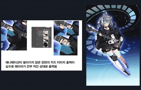 하지만 이 과정에서 카드 원화와 리소스 품질 문제에 대한 유저들의 지적이 있었다. 이에 개발사인 슈퍼크리에이티브는 김형석 대표 겸 PD와 김탁군 아트 실장이 직접 출연해 이에 대해 설명하는 영상을 최근 공개했다. 김 대표는 “출시 전부터 유저에게 불완전한 퀄리티를 선보인 점은 전적으로 우리의 책임”이라고 고개를 숙였다.