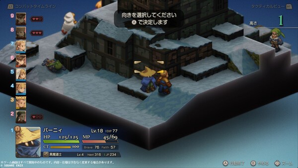 그리고 'FF 택틱스'의 뛰어난 게임 디자인은 바꾸지 않는 것이죠. 편리하게 하거나 플레이하기 쉽게 하는 것은 얼마든지 할 수 있지만, '여기는 바꿔서는 안 된다'는 플레이의 근간 부분은 그대로 유지하고 있습니다.