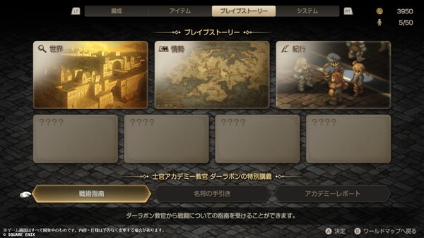 Q : 까다로운 연속 전투 지점 등 어려운 구간이 몇 군데 있는데, 이번에는 연속 전투 중에도 월드맵으로 돌아갈 수 있게 되었네요. 그때까지의 전투는 리셋되지만, 막히는 일이 없어져서 도움이 됩니다. 그러고 보니, 레벨 업에 활용할 수 있는 랜덤 인카운트도 사양이 바뀌었죠.