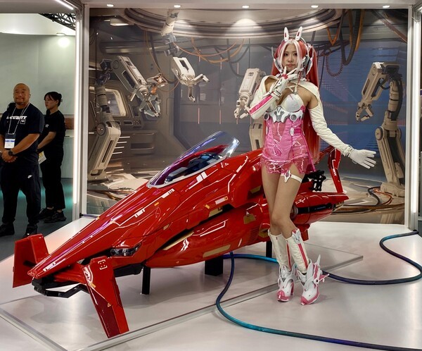 그리고 유명 코스플레이어인 츠키노 모모는 얼티밋 루나 코스튬을 입고 호버 바이크 옆에서 다양한 포즈를 선보였다.
