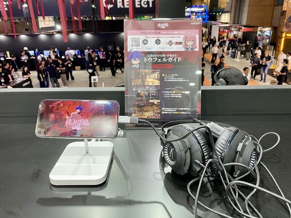 도쿄게임쇼 현장에 마련된 부스 상단에는 마치 피가 흘러내리는 듯한 모습으로 꾸몄다. 원작의 강렬한 분위기를 입체적으로 구현한 모습이다.