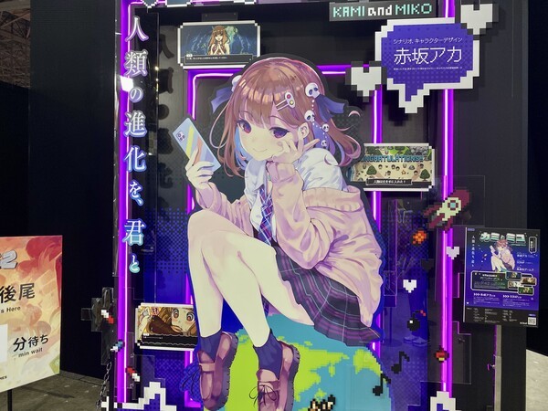특히 픽셀 아트 스타일의 캐릭터가 그려진 전시물과 함께 일본어로 된 설명 패널들이 배치되어 있어, 일본 현지 관람객들을 대상으로 한 상세한 게임 소개가 이루어지고 있음을 알 수 있었다.