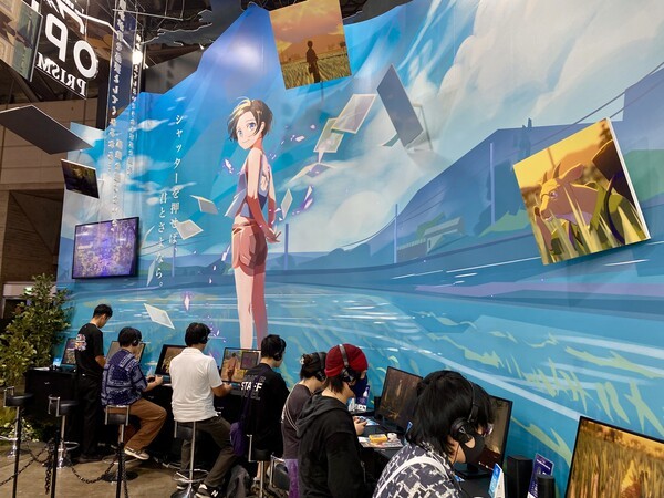 이번 슈에이샤게임즈 부스에서 가장 눈에 띄는 전시는 'OPUS: Prism Peak' 코너였다. 부스 중앙에는 파란 하늘과 구름이 펼쳐진 대형 배경 그래픽과 함께 게임의 주인공이 그려진 거대한 디스플레이가 설치되어 관람객들의 시선을 사로잡았다. 전시 공간 앞쪽에는 다수의 플레이 스테이션이 마련되어 있어 관람객들이 직접 게임을 체험할 수 있도록 했다.