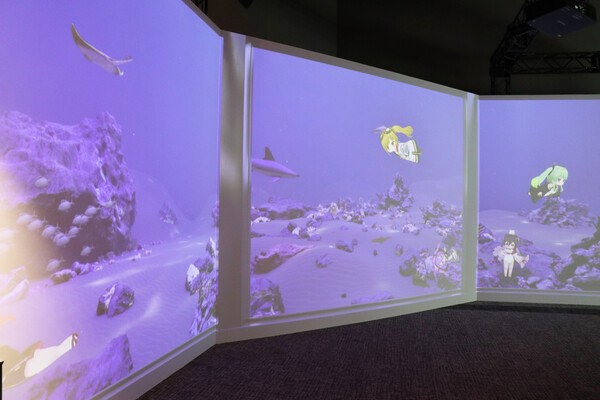 또한, 맞이 공간 '센터링'에는 특제 모니터가 장착된 기둥 10기가 설치되어 있었다. 여기에서는 카드 스캐너에 입장 특전 카드나 클리어 보상의 뒷면을 대면 특별 영상을 감상할 수 있었다.