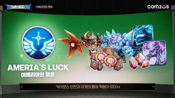 '아메리아의 행운'은 이번 업데이트의 핵심 시스템이다. 카이로스 던전과 이계의 틈에 적용되는 이 시스템은, 하루에 500 에너지까지 전설 등급 이상의 보상 드랍률을 5배 이상으로 높여준다. 이는 룬과 아티팩트의 선택의 폭을 좁히되 보상의 가치를 극대화하는 방식으로 설계됐다.