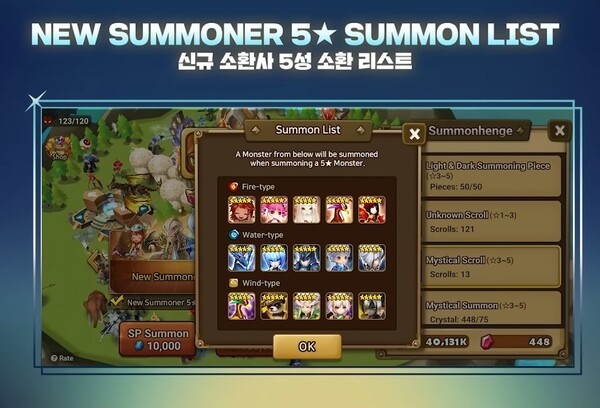 신규 소환사의 게임 초반 진행을 돕기 위해 5성 소환에 제한된 소환 리스트가 도입된다. 정해진 불, 물, 바람 15종의 몬스터 풀에서 최대 3회 동안 해당 몬스터만 소환되는 방식이다.