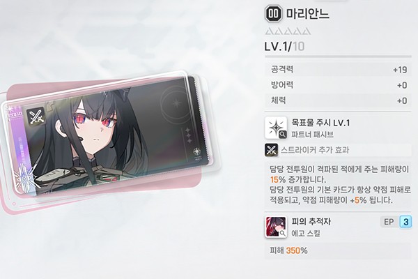 ■ 스트라이커 파트너 ‘마리안느', 기본 카드가 약점 피해로 적용