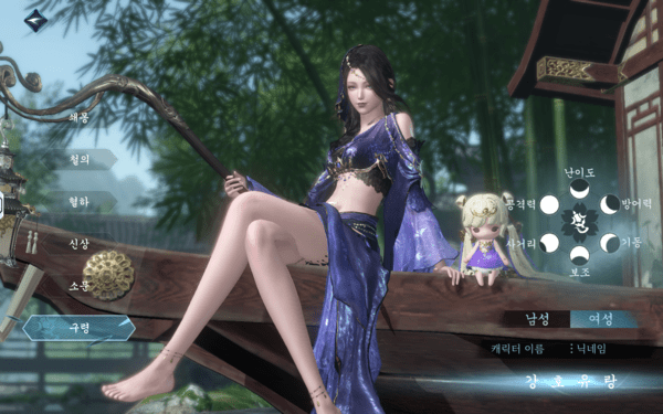 흥미로운 점은 일부 클래스가 특정 성별에만 한정된다는 것. 예를 들어 철의는 남성, 소문은 여성만 선택할 수 있다. 각 클래스는 공격력, 방어력, 사거리, 기동 등 여섯 가지 지표로 능력이 구분된다. MMORPG 장르에서 다수 차용하는 판타지 장르와 비교하면 명칭만으로 클래스의 특징이 직관적으로 이해되지는 못했다. 직업 선택 화면에서도 캐릭터의 주요 무기 정도만 알 수 있기에 캐릭터 선택의 폭을 넓히기 위한 보조 설명의 부재가 아쉬운 부분이다.