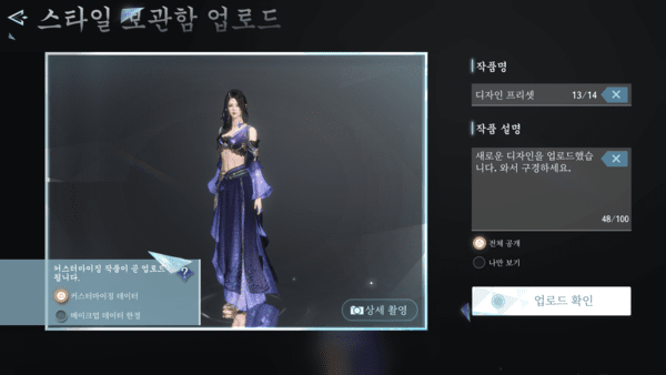 특히, 커스터마이징에 많은 시간을 할애한 공들인 캐릭터가 실제 인게임에서는 설정과 다르게 보이는 경우가 더러 있다. '역수한'에서는 캐릭터 생성을 마치고 인게임에 들어가기에 앞서 캐릭터 미리보기를 제공이나 사진이나 영상으로 미리 캐릭터를 볼 수 있어 커스터마이징에서의 실수를 최소화했다. 아울러, 자신의 캐릭터를 공유해 업로드할 수 있는 등 캐릭터 생성부터 많은 시간을 투자하게 만든다.