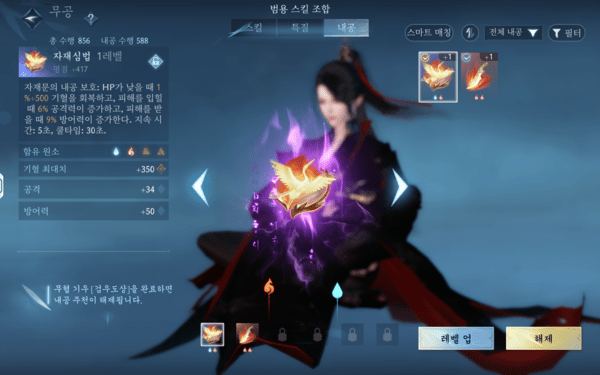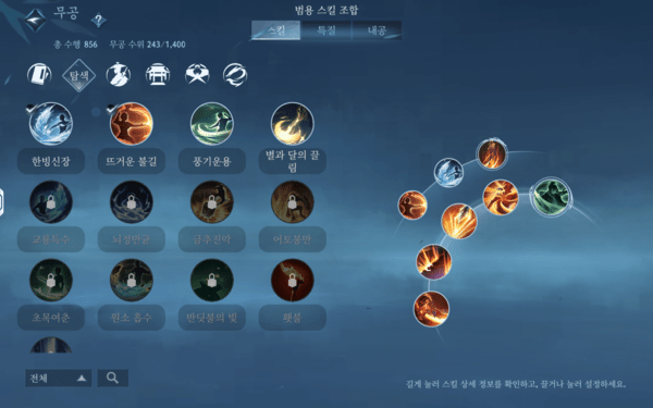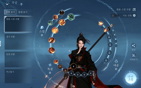 이런 일련의 과정이 번거롭다면 범용 스킬이나 던전 등 원하는 콘텐츠에 맞춰 조합을 자동으로 해주는 추천 조합 기능의 도움을 받으면 된다. 이를 통해 같은 직업이라도 스킬 조합을 다르게 가져갈 수 있다.