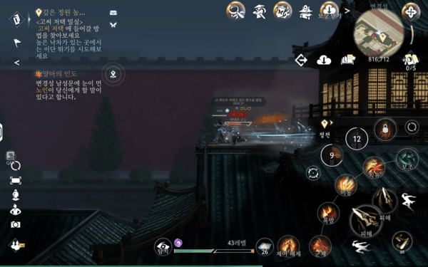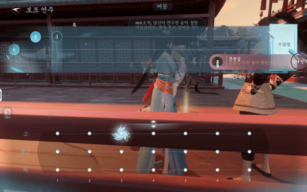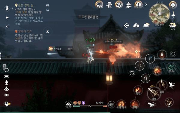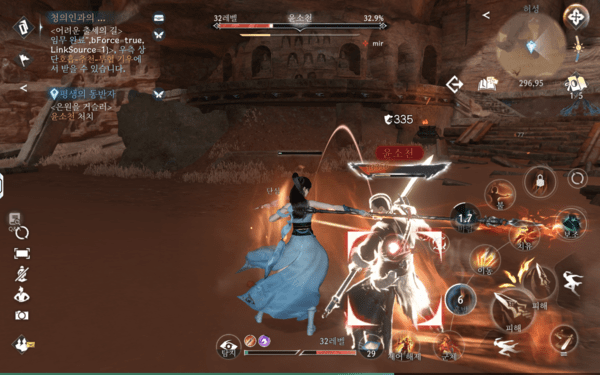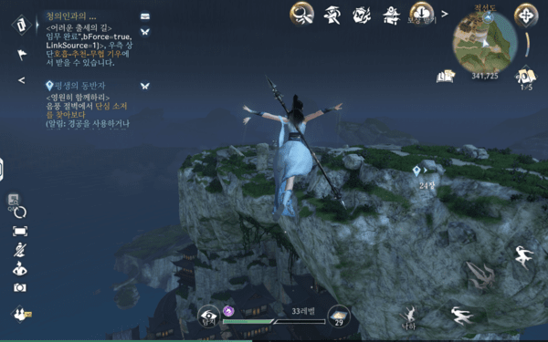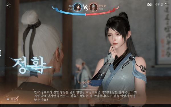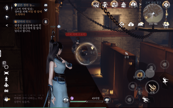 그 외에도 물 속성 무공으로 불을 끄는 ‘상호작용 퀘스트’나 모바일 기기의 특성을 살려 자이로센서의 기울기를 활용해 문제를 해결하는 ‘모션 기반 퀘스트’, 리듬 게임처럼 박자를 맞춰 누르거나 적에게 들키지 않고 목적지까지 몰래 이동하는 등 퀘스트에 다양한 기믹을 가져왔다. 이처럼 다양성과 창의성이 돋보이는 퀘스트가 다수 존재하고, 일부 보스 토벌 퀘스트에서는 혼자서는 벅차다고 AI 동료까지 합세해 같이 싸워준다. 덕분에 AI가 단순한 기능 보조를 넘어, MMORPG에서 다수의 사용자 역할을 대체하는 느낌마저 전해준다.