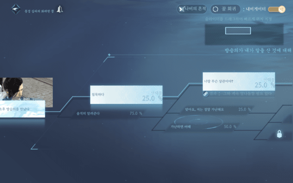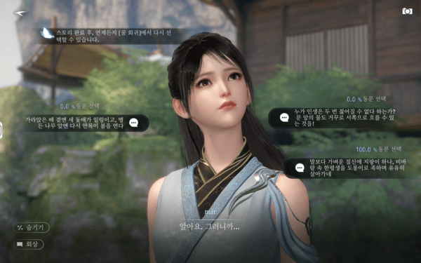 '역수한'에서 기술적으로 가장 눈에 띄는 부분은 바로 AI 시스템이다. 앞서 언급한 캐릭터 커스터마이징에서 사진을 업로드해 AI가 이를 기반으로 얼굴을 재현하는 AI 커스터마이징 기능을 비롯해, NPC와의 대화에서도 AI가 적극적으로 개입한다.