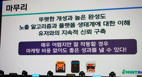 다만 그는 “개발자가 직접 게임을 설명할 수 있어야 한다”고 강조했다. “게임의 장점과 맥락을 누구보다 잘 아는 사람이 직접 홍보해야 진정성이 전달된다. 민트로켓 내부에도 이런 역할을 맡은 인력이 있다”고 덧붙였다.