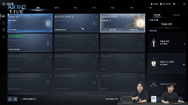 이와 함께 업적 시스템도 공개됐다. 업적은 최대 3개까지 장착 가능하며, 장착 시 추가 효과를 얻을 수 있다. 또한 선택한 업적은 캐릭터 이름 위에 타이틀 형태로 표시돼 시각적인 차별화도 가능하다.
