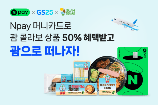 네이버페이(Npay)가 괌 여행 성수기를 앞두고, GS25 및 괌정부관광청과 공동 프로모션을 진행한다. ‘Npay 머니카드’로 GS25에서 괌 현지 감성의 컬래버 간편식 구매 시, 결제 금액의 50%를 포인트로 지급한다.