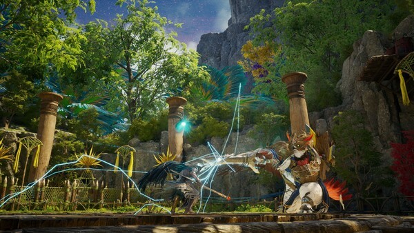‘우루구구 협곡’의 중간 구역에서는 중간 보스급인 ‘바람술사’를 쓰러뜨리면 ‘바람길’이 열린다. 날개를 펴고 지정된 바람길로 뛰어들면 하늘 위를 미끄러지듯 이동할 수 있는데, 이 짧은 구간이 바로 원작의 상징이었던 ‘비행’ 감각을 완벽히 재현한다.