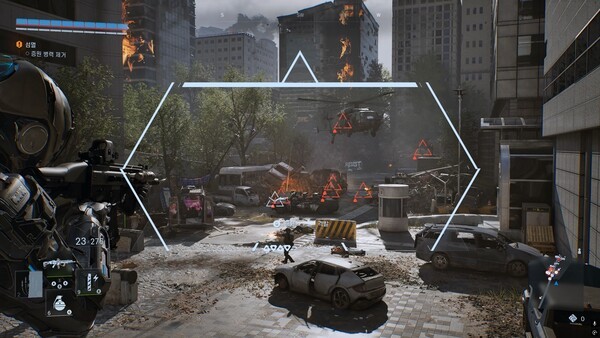 ‘신더시티’는 언리얼 엔진 5로 개발되어, 폐허가 된 도시의 질감과 빛의 흐름을 사실적으로 구현했다. 불길이 치솟는 고층 빌딩, 부서진 차량, 흩날리는 먼지 속 빛줄기까지. “서울이 멸망한다면 이런 모습일 것”이라는 상상이 현실감 있게 다가온다. 그래픽과 조명 연출의 조합은 단순한 기술 시연을 넘어, 일종의 ‘세계관 경험’으로 느껴진다.