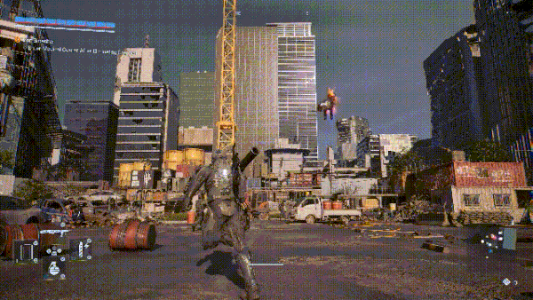 시연 버전에서는 폐허가 된 시가지를 오토바이로 질주하며 목적지까지 이동하기도 하는데, 개발사 빅파이어게임즈는 “최종 맵 크기가 GTA5보다 넓다”라고 자신했다.
