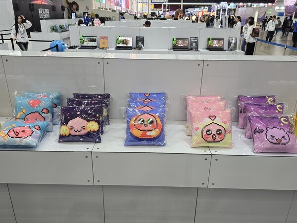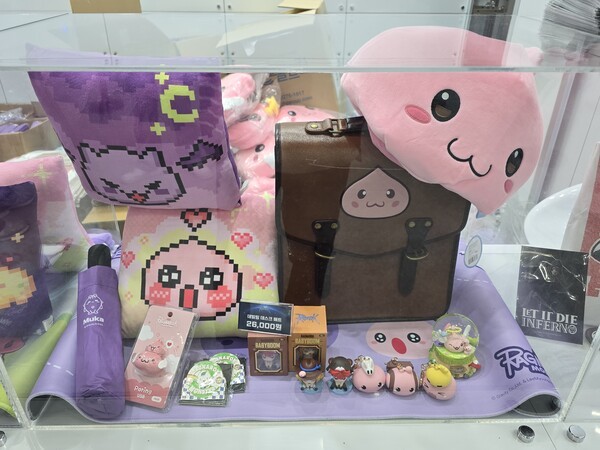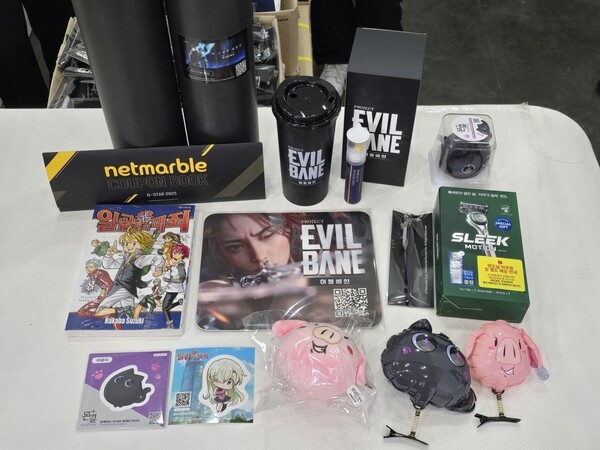 넷마블은 '일곱개의 대죄:오리진'과 '몬길: 스타 다이브', '프로젝트 이블베인'의 굿즈가 메인으로 준비됐다. 원작 만화나 머리핀 풍선, 인형, 스티커, 텀블러, 게임 쿠폰 모음 등 종류가 다양하다.